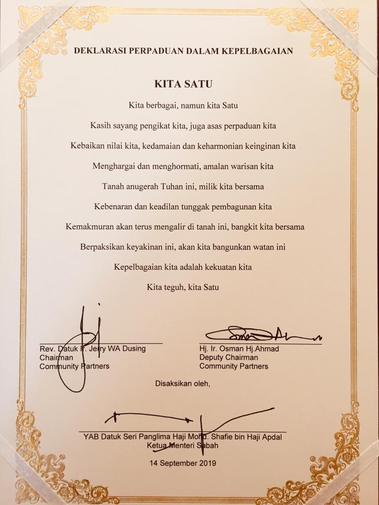 In 2019, the community partners succesfully led the first community-organised Malaysia Day celebration at Padang Merdeka, Kota Kinabalu. On that night, they made a declaration of their values and dreams for the land of Sabah entitled ‘Kita Satu’.